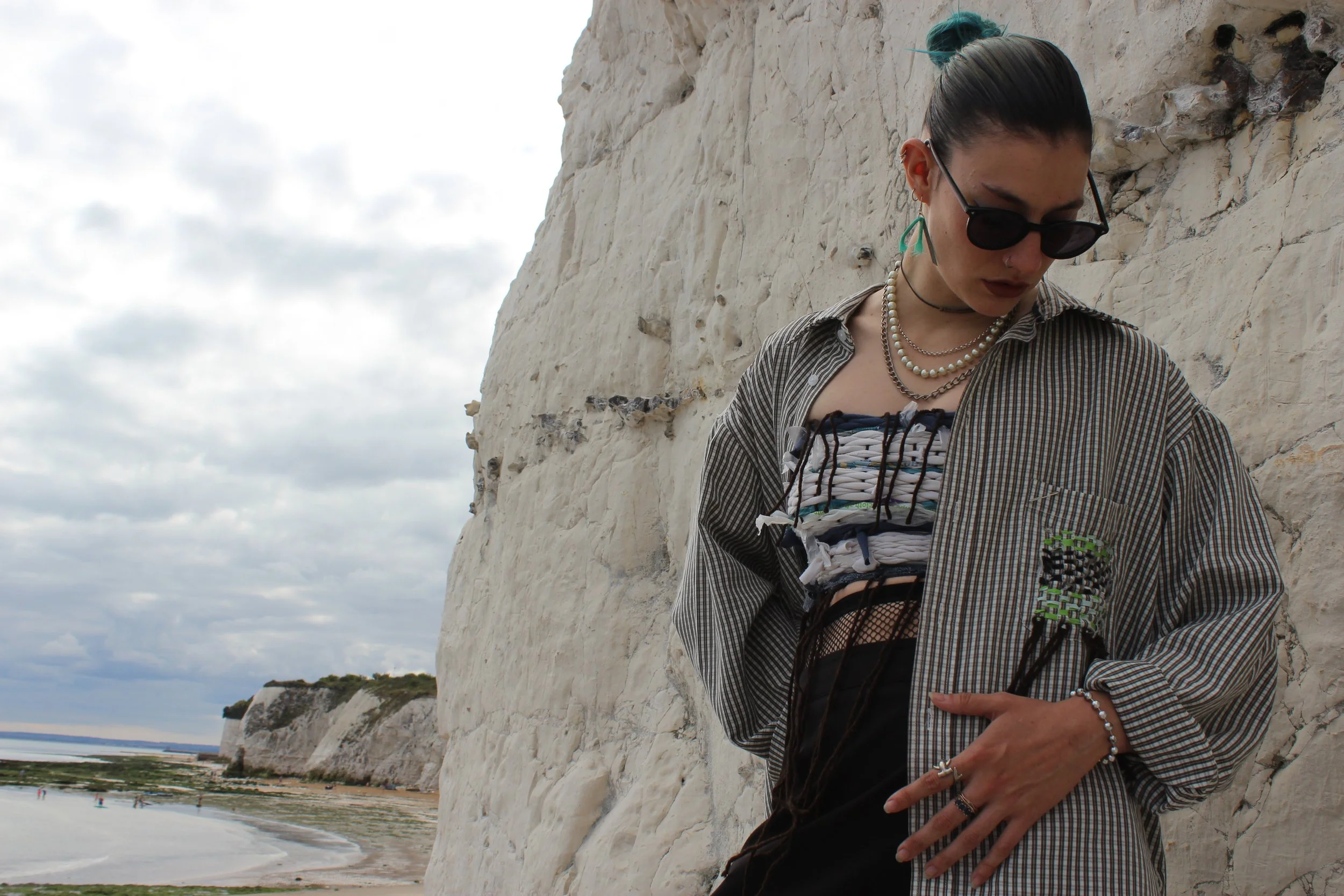 WEAVING WASTE is the most recent collection upcycling various garments, using waste streams as embellishment.