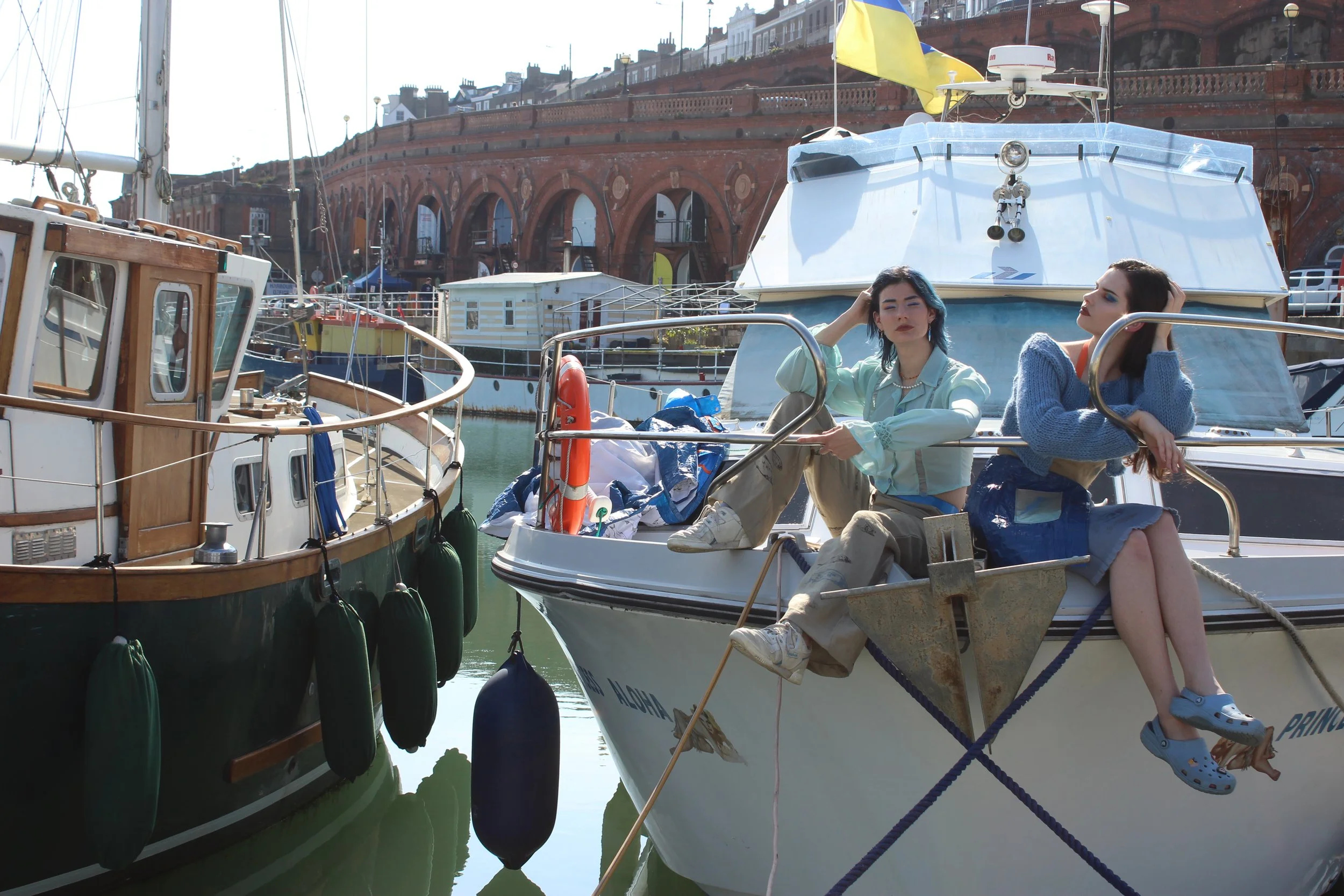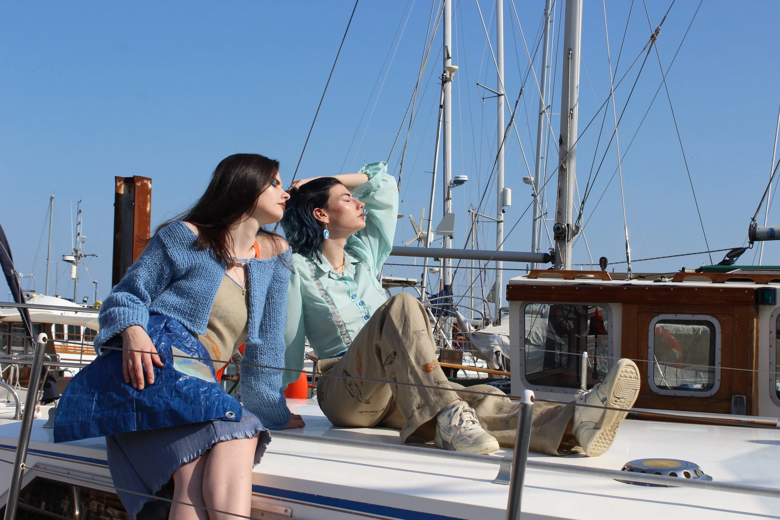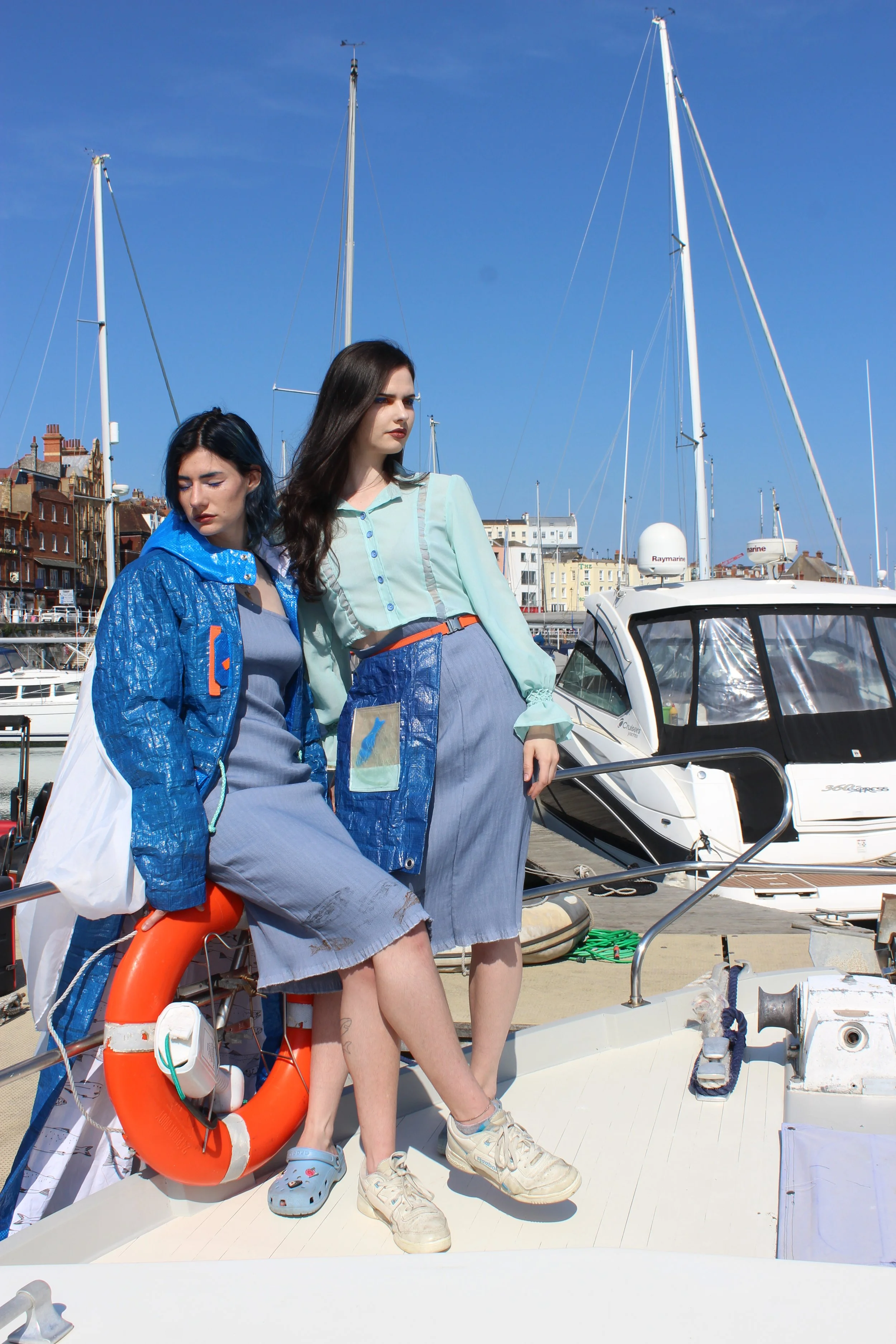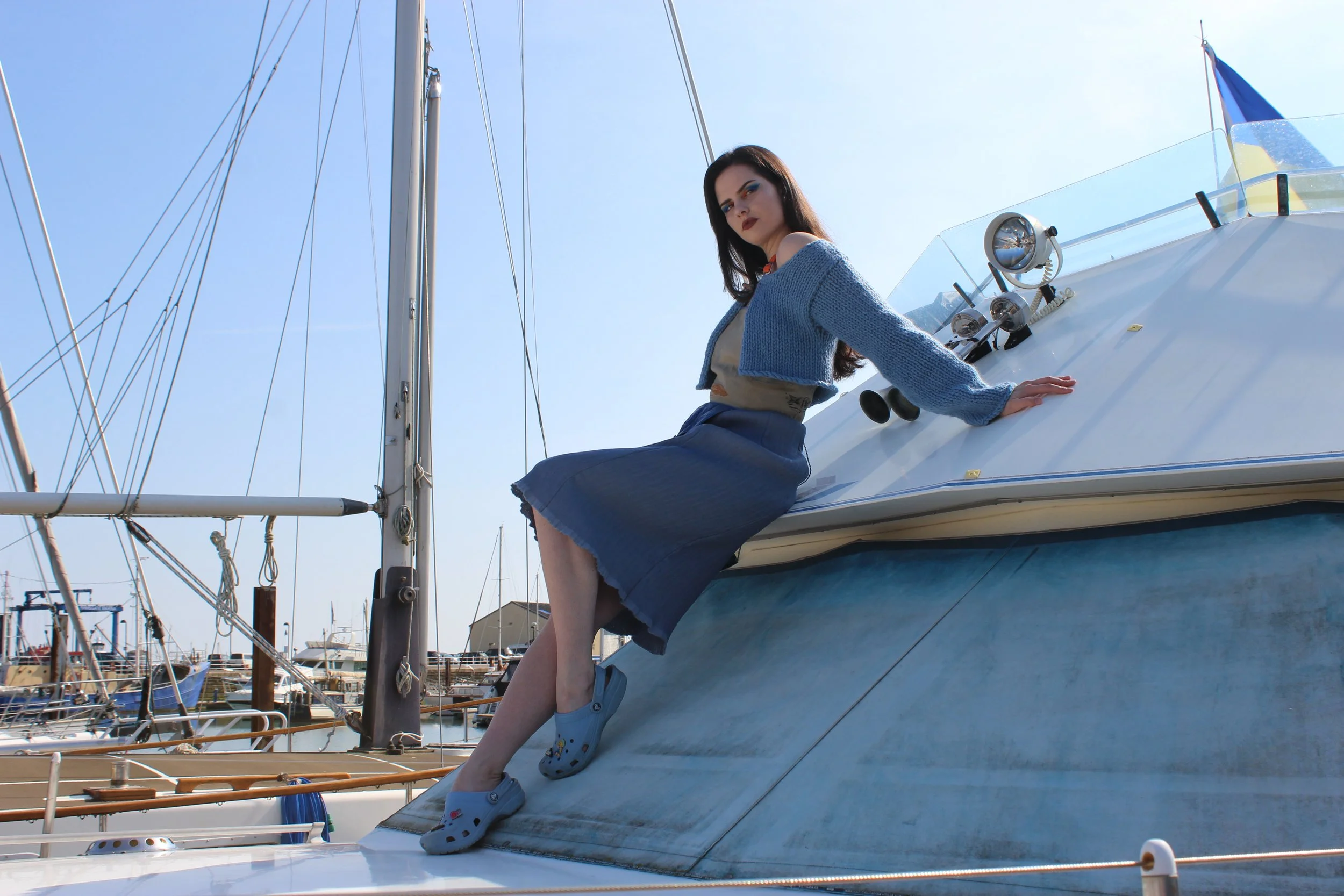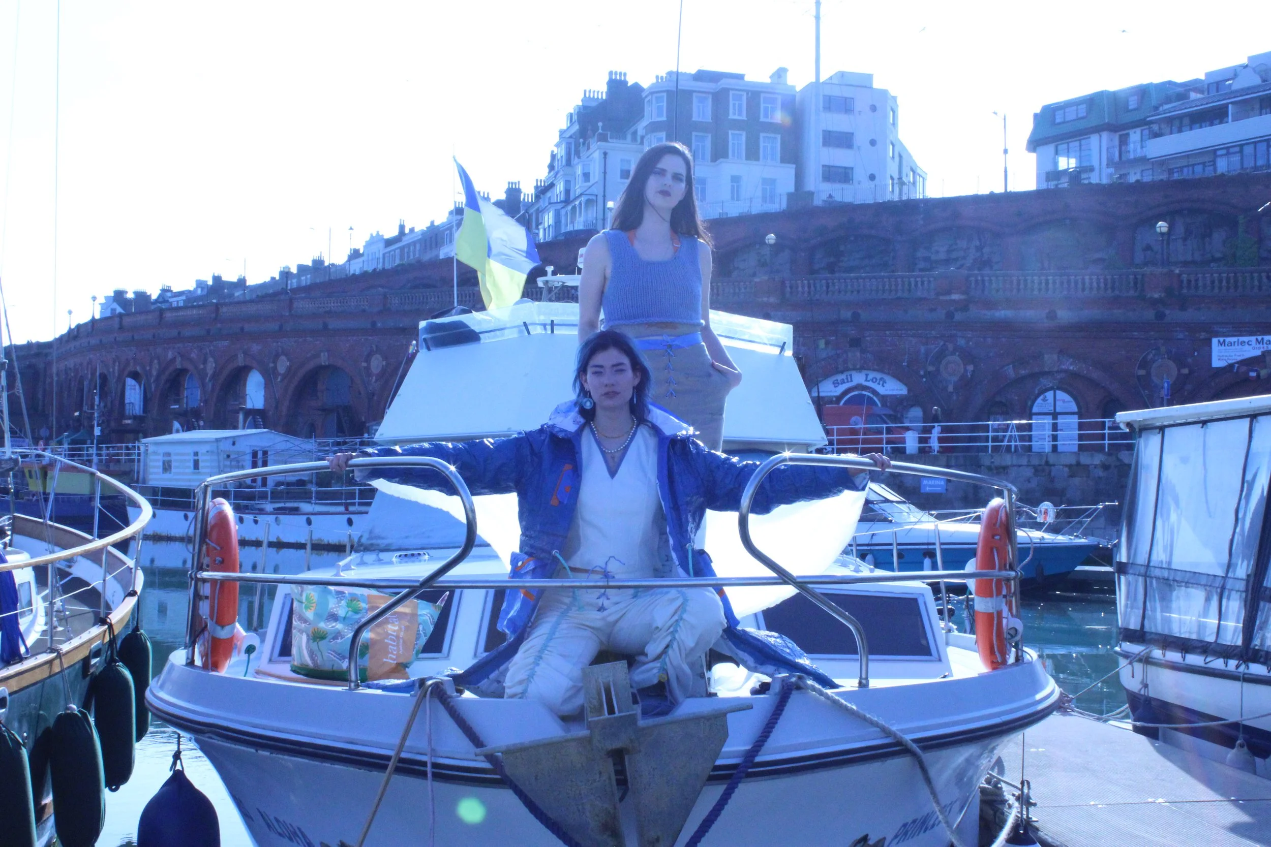 My final collection was inspired by the Scottish herring lassies who travel down the east coast of the UK alongside their husbands at sea. They were responsible for gutting the fish that were caught, knitting the fishermen’s jumpers, and making & repairing the fishing nets. However, due to the introduction of plastic within the industry now, these nets are made of synthetic materials and cannot be easily repaired. This means they are discarded by fishing boats and left in the sea creating a huge issue of ghost nets. These are a huge environmental issue, trapping ocean wildlife and releasing toxins into the sea.
